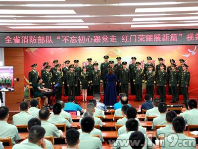 为热烈庆祝中国共产党成立97周年,教育引导广大官兵铸牢忠诚品格,全面激发投身改革的强大动力,凝聚新时代新担当新作为的发展共识,充分展示全省消防部队不忘初心、继续奋斗的时代风貌,6月29日,贵州总队隆重举办“不忘初心跟党走红门荣耀展新篇”视频歌会。总队在家党委常委、机关全体官兵、消防文员在总队主会场观看歌会,全省消防部队除执勤值班以外的全体官兵、专职队员、消防文员在各分会场观看歌会直播盛况。