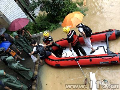 由于被困人员大多是行动不便的老人、妇女、小孩,根据现场情况,现场指挥员立即安排一组经验丰富的消防官兵乘坐橡皮艇,一家一户逐一排查,将被困群众转移至安全地带,经半个小时的救援,被困的20名群众被转移。
