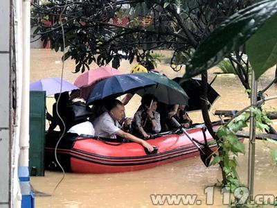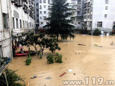 7月11日7时35分,由于连日强降雨,导致四川省广元市利州区宝轮镇园丁苑小区居民楼被淹,有大量人员被困。广元市消防支队接警后迅速出动,赶赴受灾地点进行救援,经过消防官兵30多分钟的紧张救援,被困的20名群众被成功转移。