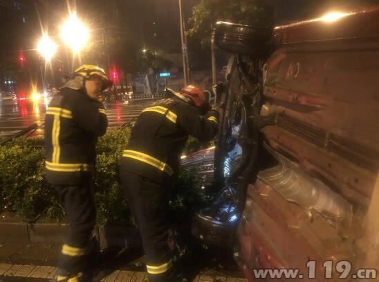 7月12日00时11分,北京石景山消防支队高能所中队接到报警称,位于玉泉路鲁谷路交叉口由南向北方向发生一起交通事故,接到报警后,中队迅速出动一车7人赶往现场。