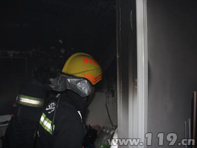 消防官兵到达现场后,通过现场侦查和询问知情人,发现起火物为洗手间内洗衣机、拖布以及棚顶,现场浓烟滚滚。根据现场情况,中队指挥员立即下达命令,扑救人员立即出1支水枪,直攻着火点,控制火势防止火势,打开楼道内所有窗口,将浓烟散开。
