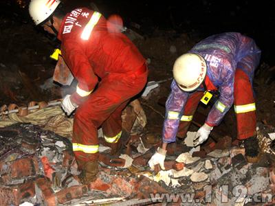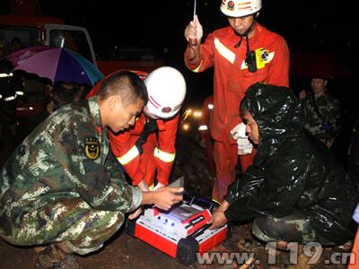 10日23时01分,广元市119指挥中心接到群众报警称:青川县竹园镇建峰乡碾子村刘家湾发生泥石流,一家三口被埋。接到报警后,指挥中心立即调集辖区消防大队2车10人赶往灾害现场。由于前晚暴雨导致前往灾害现场的路段有多处塌方、滑坡等,指挥员下达徒步前进命令,救援官兵佩戴个人防护装备,携带相关救援器材,徒步行进至灾害现场。