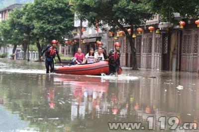 12日下午1时,洪峰逼近最高水位221米,抗洪抢险总指挥部传来命令:镇卫生院附近一处电力设备发生故障,导致卫生院停电,危急部分病员生命,请求消防官兵配合运送电力抢险人员开展维修!中队长主动请战:让我们上!他带着四名队员,驾驶冲锋舟往返在洪水中10余趟,运送电力抢险人员10人,物资近1吨,在两个小时后成功完成了电力抢险任务,及时为卫生院供上电。