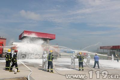 为认真吸取石油化工火灾战例的经验和教训,全面检验各联动单位在重大石油化工火灾事故中的协同作战、应急通信和综合保障能力,提高官兵危险化学品火灾事故处置能力。7月13日上午,萍乡消防联合市应急办、公安、交警、安监、卫生、环保等11个部门,在开发区美孚伦石化有限公司举行大型石油化工企业消防应急演练。
