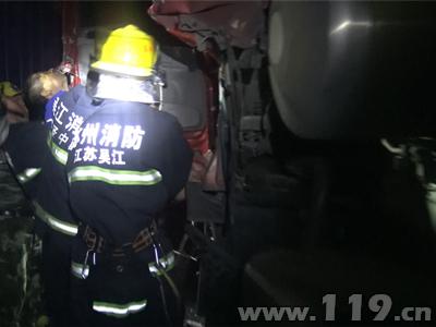 7月12日凌晨0时13分,江苏省苏州市消防支队吴江大队接到119指挥中心报警称,位于苏州市吴江区苏嘉杭线离盛泽7公里处发生一起交通事故,有1人被困,急需救援。接到报警后,大队迅速调派盛泽中队2辆消防车11名消防官兵前往现场处置。