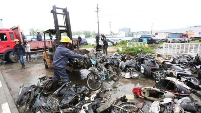 北京丰台区花乡地区集中清理违规电动自行车充电电瓶