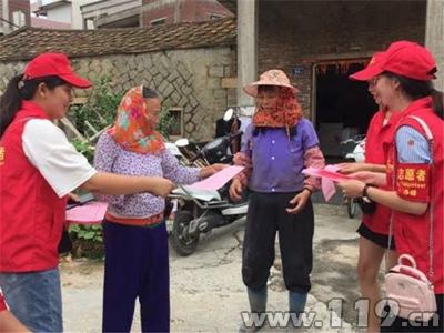 7月5日,泉州惠安县消防大队组织消防志愿者进村入户开展夏季消防安全宣传活动。