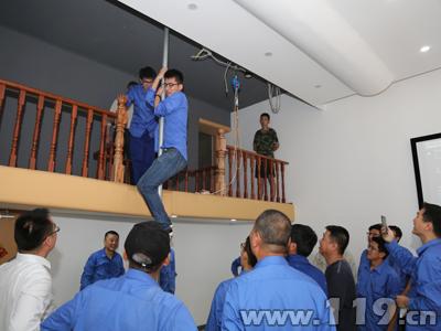在体验馆内,宣讲人员结合供电公司特点,有针对性地向主要负责人、安全员、施工人员讲解了各类火灾的特点、防火灭火常识、疏散逃生注意事项、自救与救人技能等方面的知识。同时,通过高压电火灾案例的新闻、图片、视频等导入,宣讲人员一边在模拟设施设备上结合动画进行演示,一边讲解相对应的消防安全知识。最后,在逃生体验区,利用设备模拟了火灾现场场景并组织了疏散逃生演练。